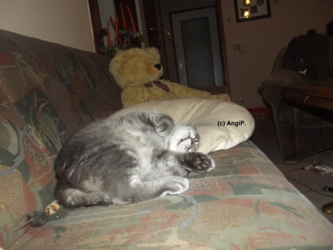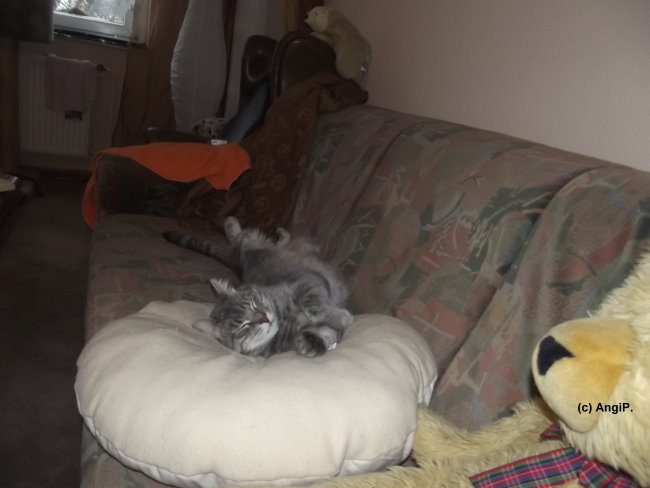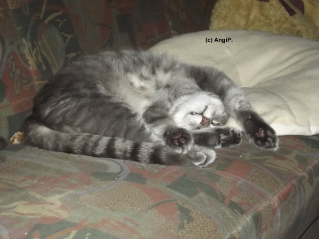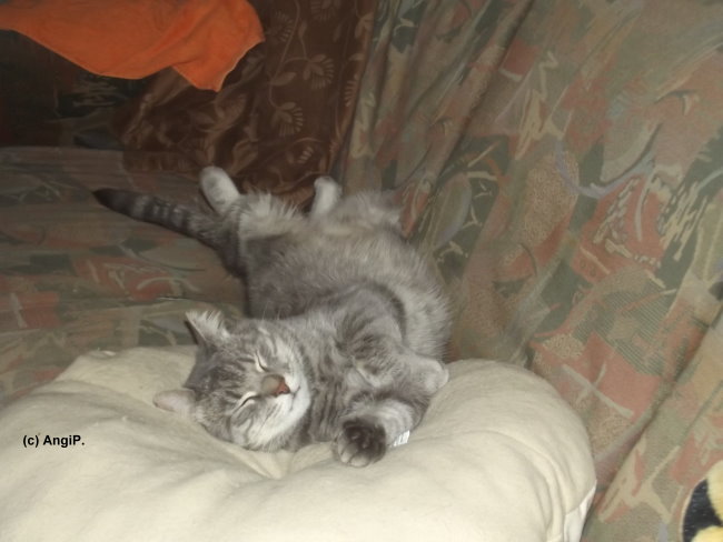 Am Mittwoch früher Abend war alles wie immer. Beide haben ihr Abendessen vertilgt, Mimi lag auf dem Bett und hat geschlafen, Willy stromerte durch die Wohnung. Und dann sprang er auf den Wohnzimmertisch, schrie kurz auf und gab dann komische Geräusche von sich. Dann fiel er um, gab weiter diese Geräusche von sich. Ich stand daneben und wusste nicht, was ich tun sollte. Also erstmal versucht, einen Tierarzt zu erreichen - um kurz vor 19.00 Uhr vergeblich.