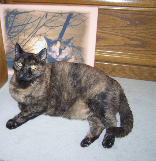 Ich hatte das Bild umgedreht an den Schrank gestellt, so dass ich dich von meinem Fernsehsessel aus immer ansehen konnte. Und dann legte Bonny sich genau vor das Bild. Sie hat - bevor das Bild dort stand - nie dort gelegen. Mir kam es vor, als ob sie es gesehen hat, dass du dort zu sehen bist und sie in deiner Nähe sein wollte. Das hat sie einige Tage gemacht, sich vor dieses Bild hinzulegen. Jedes Mal war es für mich ein bewegender Moment.