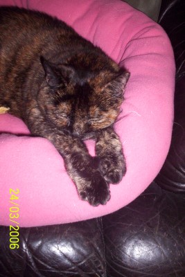 "Nun gut - auch mit dieser ulkigen "Katzninchen" haben wir uns aber auch arrangieren können. Muckl lebte bis kurz vor Weihnachten 2001 bei uns - dann mußte sie auch auf die Regenbogenbrücke gehen.